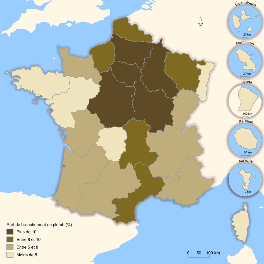 Jusque dans les années 70, le plomb a été utilisé dans les réseaux de distribution, car il était le seul matériau capable de garantir une étanchéité parfaite et d’empêcher la contamination de l’eau distribuée. Le plomb a notamment été utilisé pour les branchements, c’est à dire les tuyaux à l'intérieur des habitations amenant l'eau aux différents robinets, mais aussi les conduites entre le compteur et l'habitation dans les maisons particulières et les colonnes montantes distribuant l'eau dans les immeubles. Or, au contact de ces branchements et canalisations, l'eau potable peut se "charger" en plomb. Le plomb est un élément toxique cumulatif et présente donc des risques sanitaires. Les branchements en plomb sont proscrits depuis la directive européenne 98/83/CE du 3 novembre 1998, qui limite les teneurs en plomb dans l’eau. Cependant, sur les 23,5 millions de branchements d’eau potable en France, 7,5 % sont encore en plomb en 2008.